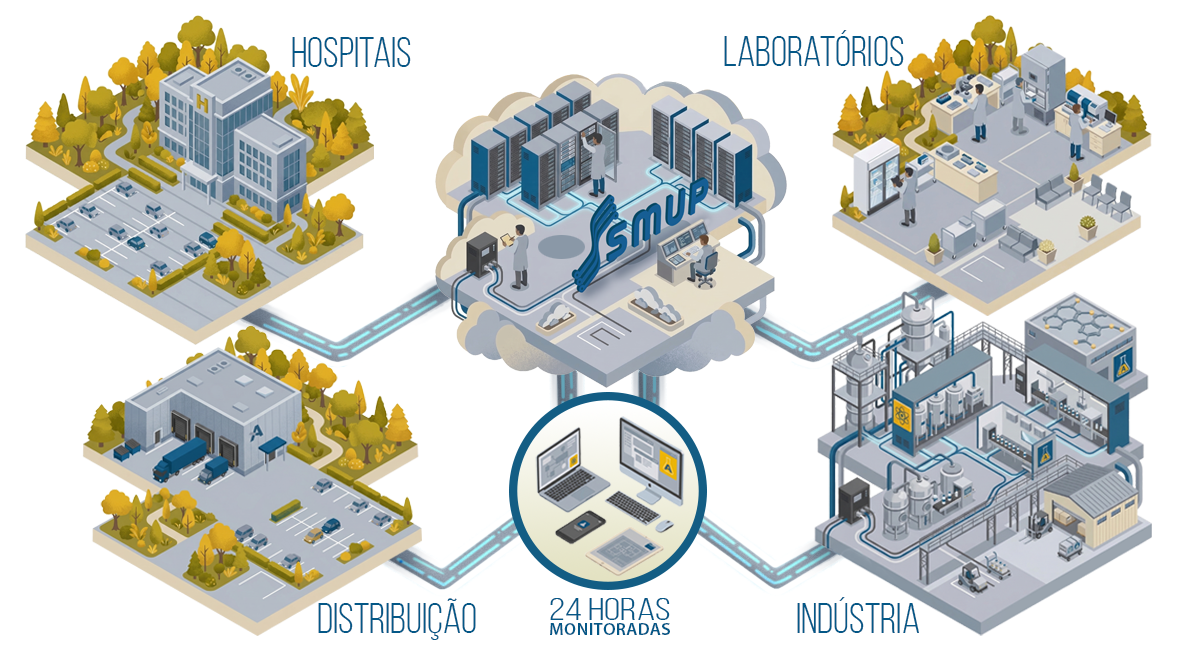 O SMUP monitora temperatura, umidade, corrente, tensão, pressão diferencial e falta de energia.